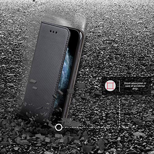 Moozy Cover per iPhone 11 PRO, Nero - Custodia a Libro Flip Smart Magnetica con Appoggio e Porta Carte