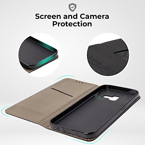 Moozy Cover per Samsung A5 2016, Nero - Custodia a Libro Flip Smart Magnetica con Appoggio e Porta Carte