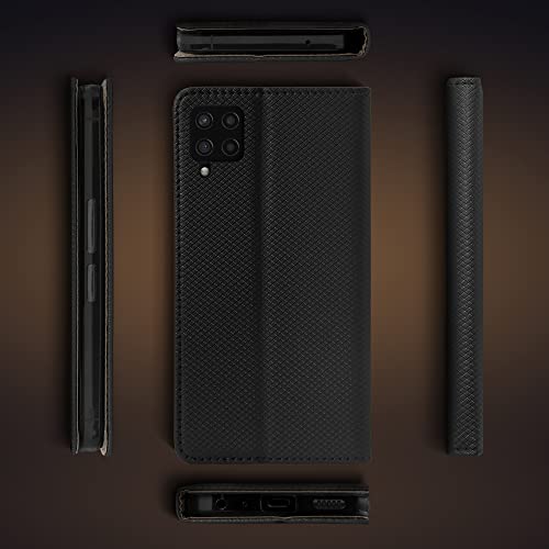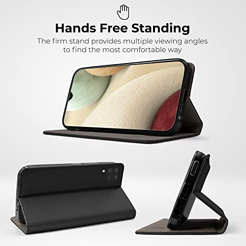 Moozy Cover per Samsung A12, Nero - Custodia a Libro Flip Smart Magnetica con Appoggio e Porta Carte
