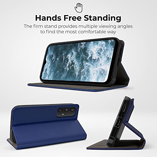 Moozy Cover per Samsung A33 5G, Blu scuro - Custodia a Libro Cover Flip Case Smart Magnetica Portafoglio con Appoggio e Porta Carte