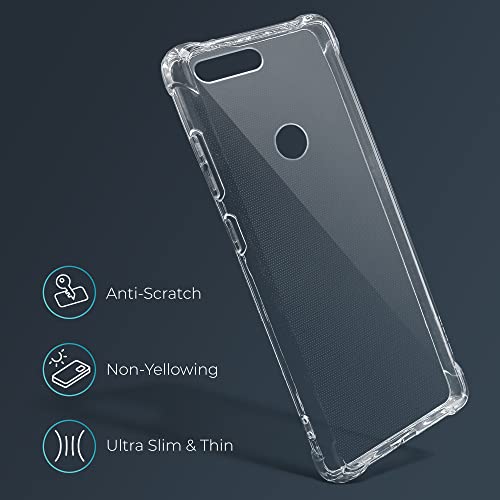 Moozy Cover Silicone Trasparente per Huawei Y7 2018 - Custodia Antiurto, Crystal Clear Case, TPU Morbido