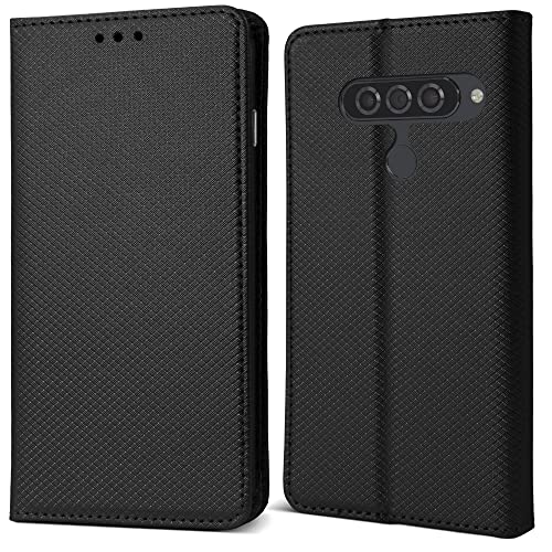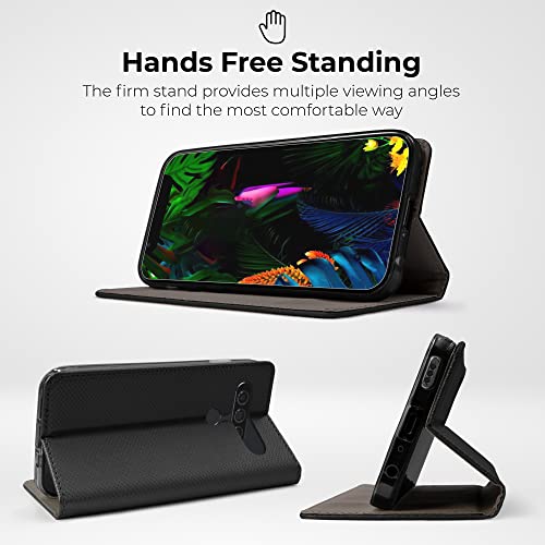Moozy Cover per LG G8S ThinQ, Nero - Custodia a Libro Flip Smart Magnetica con Appoggio e Porta Carte