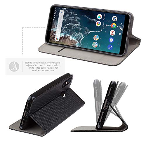 Moozy Cover per Xiaomi Mi A2, Mi 6X, Nero - Custodia a Libro Flip Smart Magnetica con Appoggio e Porta Carte