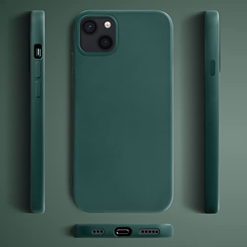 Moozy Lifestyle. Cover per iPhone 13, Verde Scuro - Custodia in Silicone Premium con Finitura Opaca e Fodera Morbida in Microfibra, Phone Case Cover Leggero