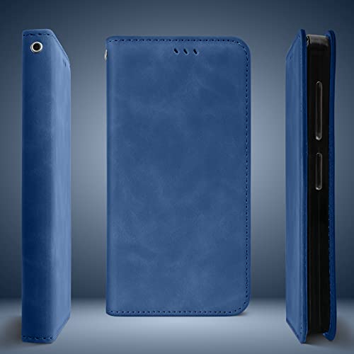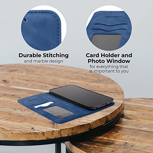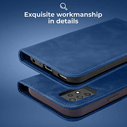 Moozy Retro Custodia per Samsung A52s 5G e Samsung A52, Blu Marmo - Custodia a Libro Pieghevole Magnetica Flip Cover Portafoglio con Porta Carte e Supporto, Fessura per Carte, Funzione Cavalletto