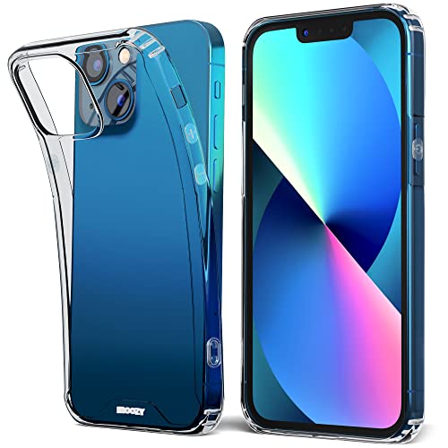 Moozy Xframe Cover per iPhone 13 Trasparente - Custodia Antiurto con Bordo Paraurti, Bicolore Case Cover Ibrida Trasparente con Telaio in TPU Antiurto