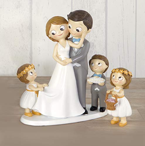 Mopec Figure Cake, Grey, 8,6 X 18,8 X 21,4 Cm & Figura Pastello Di Sposi Con Cani, Poliresina, Marrone, 4 X 4 X 7 Cm