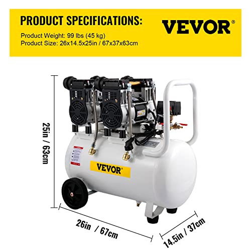 Mophorn Compressore d'aria Senza Olio a 68DB, 50L, Compressore d'aria 1960W, Compressore d'aria Silenzioso 9CFM, Accessori per Compressore d'aria Olio, Compressore d'aria Muto Senza Olio con Manometro