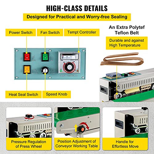 【MATERIALE DUREVOLE】- Questo sigillante continuo ha una struttura interamente in metallo con trattamento di vernice elettrostatica durevole. Il blocco di riscaldamento e il blocco di raffreddamento sono realizzati in rame puro. Questo materiale premio contro l'usura è relativamente solido.