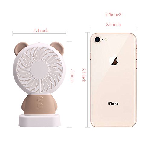 Moppson mini palmare ventilatore, USB a batteria ricaricabile personali scrivania portatile ventola di raffreddamento 2 velocità regolabile, con luce LED e base rimovibile per casa ufficio viaggio campeggio (orso bruno)