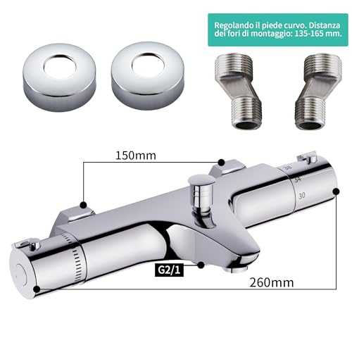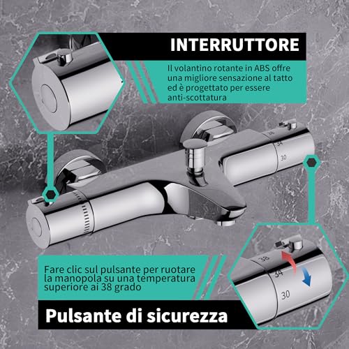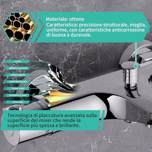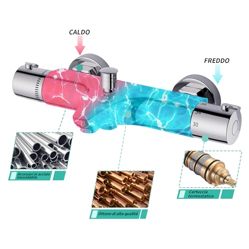 MORADO Miscelatore termostatico per doccia, miscelatore termostatico doccia,rubinetto termostatico, valvola di miscelazione con controllo della temperatura, finitura cromata, montaggio a parete