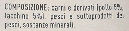 Composizione: Carni E Derivati (Pollo 5%, Tacchino 5%), Pesci E Sottoprodotti Dei Pesci, Sostanze Minerali.