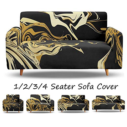 Morbuy Marmo Copridivano Fodera Copridivani Elasticizzato Sofa Protettore Copertura per 1/2/3/4 posti Divano Poltrone + Rullo Appiccicoso Regalo (Marmo dorato,3 posti)