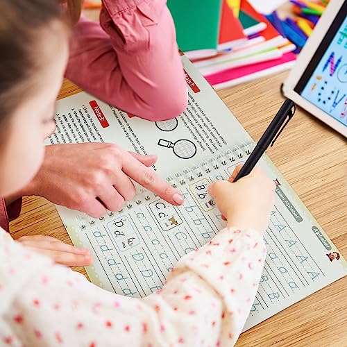 Pratica di scrittura: contiene 2 portapenne in silicone per aiutare a tenere la penna e il design dei libri di pratica scanalati, adatto per la pratica di scrittura in età prescolare.