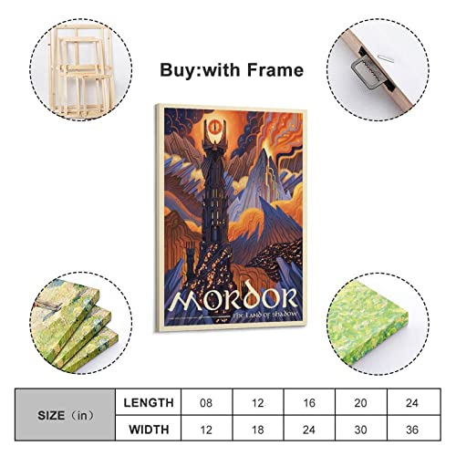 Mordor - See Middle Earth LOTR, poster vintage retrò con pittura decorativa su tela e stampa artistica da parete, 60 x 90 cm