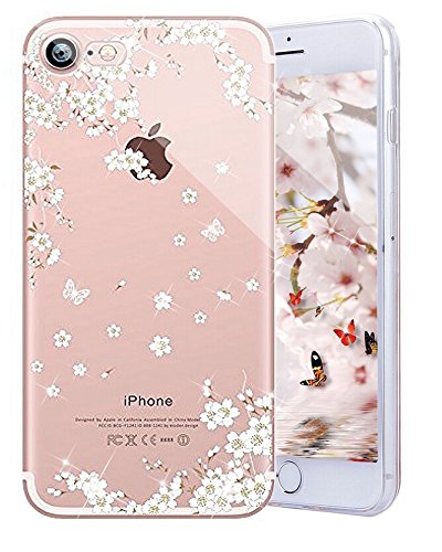 MoreChioce Compatibile con Cover 8 Plus/7 Plus Custodia Silicone,Fiore Animal Painting Colorato 3D Silicone Morbido Antiurto Cover- Fiori di ciliegio,Bianchi Fiori di ciliegio