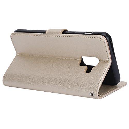MoreChioce Compatibile con Custodia Galaxy A7 2018 Cover Pelle,Glitter Diamond Strass Gufo Embossing Pattern Protettivo Portafoglio Wallet Case Leather Case Compatibile con Galaxy A7 2018,Oro