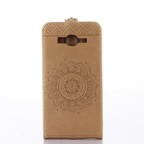 MoreChioce Compatibile con Custodia Galaxy Grand Prime Portafoglio Cover a Libro, Flip PU Pelle Leather Cover Modello Mandala Relief Wallet Case Compatibile con Galaxy Grand Prime G530B-Oro