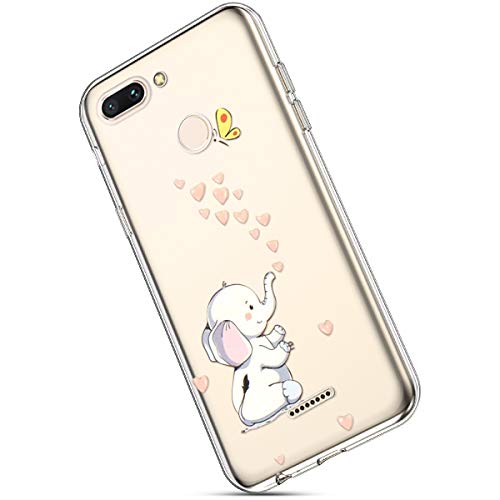 MoreChioce Compatibile con Custodia Xiaomi Redmi 6 TPU Custodia Silicone, Colorato Dipinto Cristallo Chiaro Transparent TPU Silicone Morbida Cover Antiurto Prottetivo Cover,Elefante del Bambino
