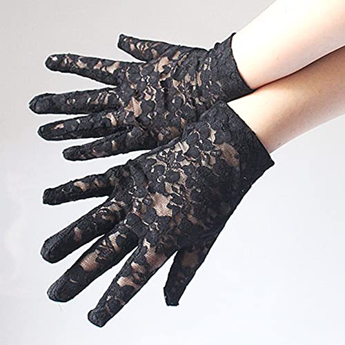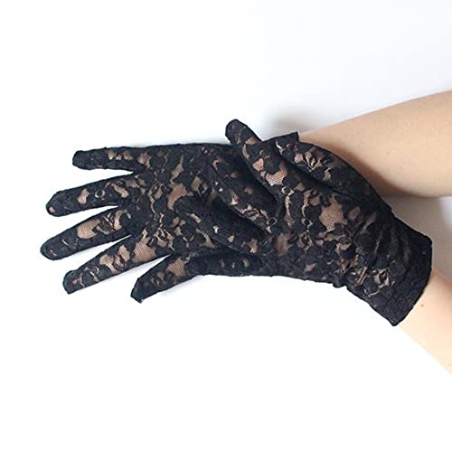 MoreChioce Guanti in Pizzo Rete, 1 paio Dita Intere Guanti in Pizzo Guanti Da Sposa Guanti Corti in Pizzo Guanti in Rete Di Protezione UV Guanti Da Sera Per La Festa Di Halloween Di Nozze,Rosso