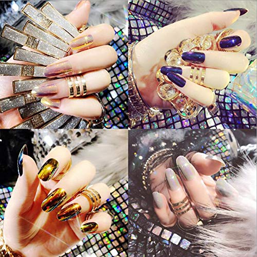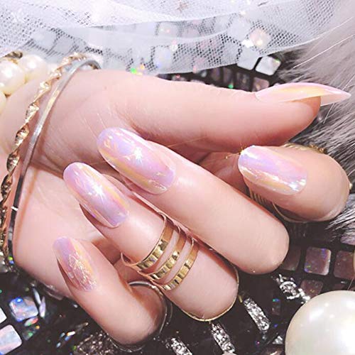 MoreChioce 24 pezzi Elegante Gorgeous Artificiali Unghie Finte,Glitter Bling Specchio Mandorla Ovali Design,Nail Art Accessori Copertura Completa Per Donne e Ragazze,#13
