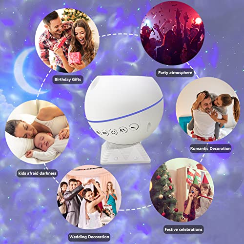 Proiettore Stelle Con Controllo Vocale - Accendi la funzione di controllo vocale, il proiettore galassia riceve l'audio, la musica del DJ o la tua voce, le nuvole / oceano e le stelle ondeggeranno con il ritmo musicale, creando un effetto discoteca, perfetto per la ballare e fare festa, home theater o decorare la stanza.