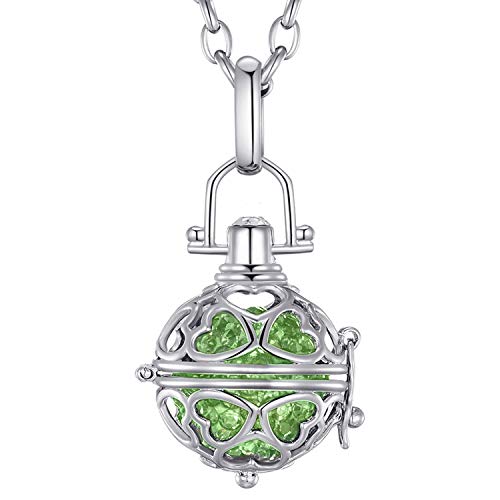 Morella Catenina Donna acciao Inox 70 cm con Ciondolo Sfera con Cuori per Sfera zirconi Verdi Ø 16 mm in Sacchetto di Velluto