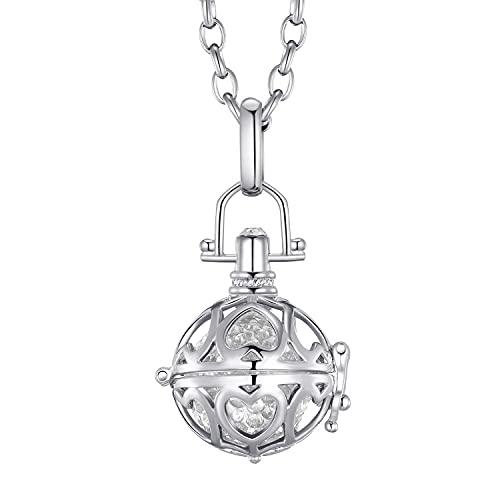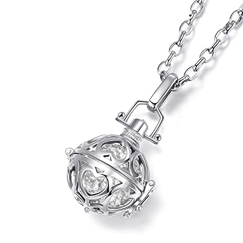 Morella Catenina Donna Angelo Custode in Acciaio Inox 70 cm con Ciondolo a cuoricino e Sfera zirconi Bianchi Ø 16 mm in Sacchetto di Velluto