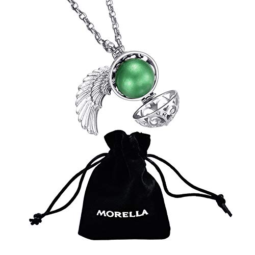 Morella Catenina Donna Angelo Custode in Acciaio Inox 70 cm con Ciondolo ad Ali di Angelo e Sfera Verde Ø 16 mm in Sacchetto di Velluto
