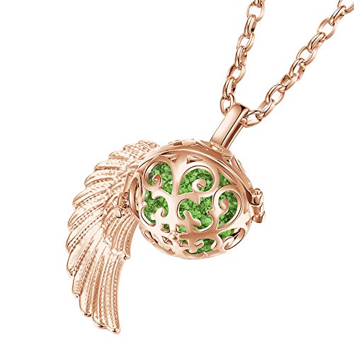 Morella Collana Catenina Donna Angelo Custode in Acciaio Inox Oro Rosa 70 cm con Ciondolo ad Ali di Angelo e Sfera zirconi Verdi 16 mm in Sacchetto di Velluto