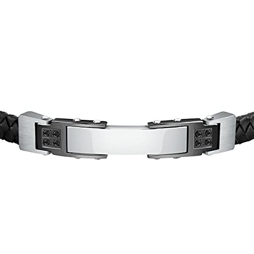 [Materiali] Bracciale da uomo Morellato Moody, in acciaio, vera pelle, cristalli, pvd grigio