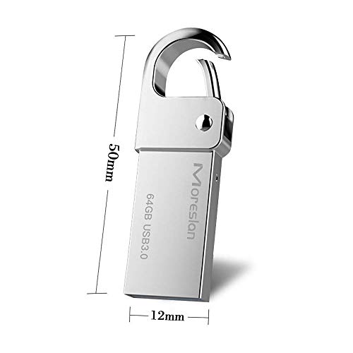 Moreslan Chiavetta USB 64 GB,Chiavette USB 3.0 con Portachiavi Mini Pen Drive Impermeabile Pennetta USB in Metallo USB Key Portatile per PC/Laptop/Smart TV/Autoradio