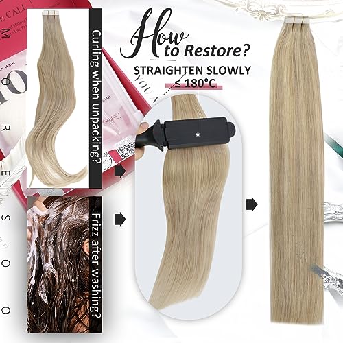 Moresoo 16 Pollice Extension Capelli Veri Biadesivo Platino Blondo 40cm 50g Extension Biadesive Capelli Veri Biadesivo Extension Adesive Biondo Cenere con Biondo Candeggina #P18/613 20pcs