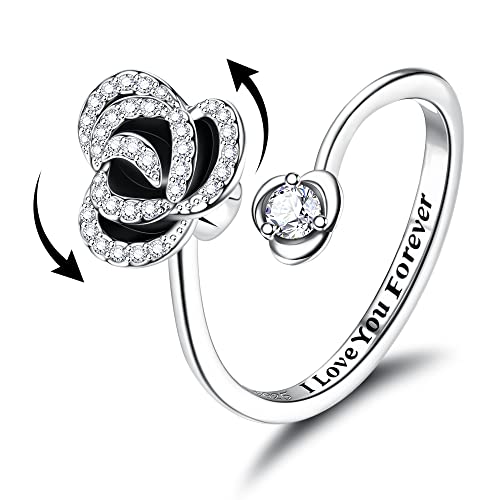Morfetto Anello d'ansia in Argento Sterling per Donna, Girasole, Farfalla, Luna, Anello di agitazione, Regolabile, Anello di You Are My Sunshine, Rosa