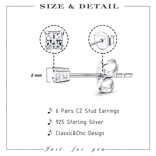 Morfetto 6 paia di orecchini a bottone piccoli in argento sterling 925 per donna orecchini cartilagine uomo bianco placcato oro bianco orecchini quadrati rotondi piccoli CZ set 2MM