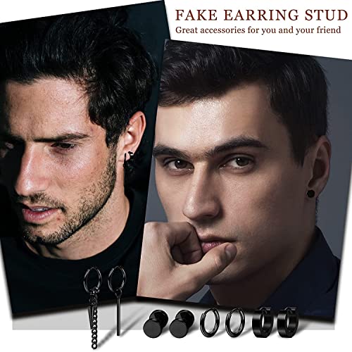 Morfetto 20 Pezzi Orecchini da Uomo in Acciaio Inossidabile Orecchini a Cerchio con Cerniera Croce Nera Orecchini Pendenti per Uomo Donna Set di Orecchini Kpop a Catena Lunga