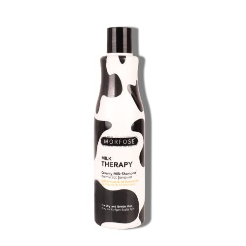 La formula contenente proteine del latte e arginina dello shampoo Morfose Milk Therapy, composto da un totale di 12 amminoacidi, pulisce i capelli delicatamente, rafforza e dona pienezza