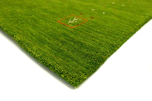 Morgenland Gabbeh - Tappeto FENTH 200 x 80 cm, colore: Verde con bordi di design, tappeto in morbida lana fatta a mano Loribaft orientale moderno