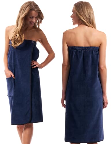 Morgenstern Asciugamano Da Bagno I Spiaggia I Donna I Elastico I Bottone I 100% cotone I Tasca I 90x142 cm I Blu