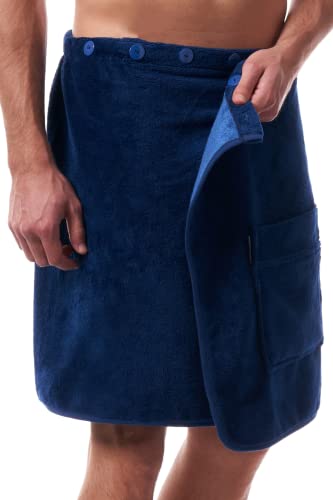 Morgenstern Asciugamano da sauna in spugna da uomo, con bottoni, 52 cm, corto, per sauna, da legare, con elastico, bottoni blu, accessori per la sauna, in microfibra, cotone e bambù