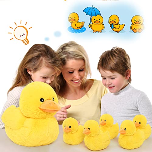 MorisMos Mamma Peluche Anatra Giallo con 5 Cuccioli, Coccoloso Anatroccolo di Peluche Kawaii per Bambini, Anatre Giocattolo di Peluche Carino per Bambina Ragazze Compleanno Natale Regalo 40cm