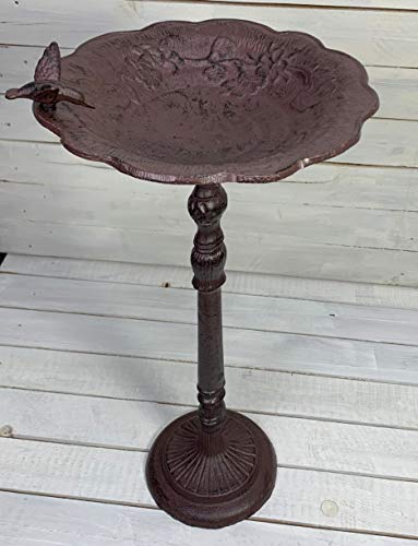 Moritz, abbeveratoio per uccelli selvatici, in ghisa, per giardino, con supporto, design anticato, altezza 58 cm, marrone