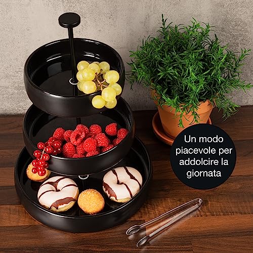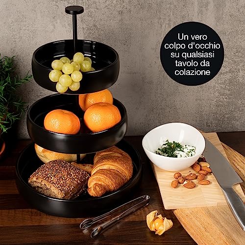 Moritz & Moritz Alzata per frutta a 3 ripiani pinza inclusa in grès porcellanato decorazione moderna o decorazione per feste perfetta come ciotola per frutta per conservare frutta muffin e cupcake