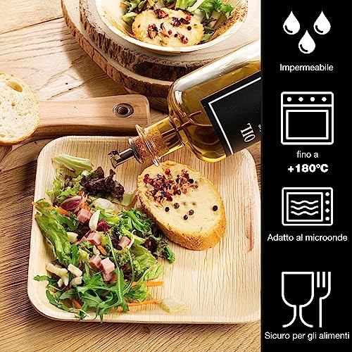 AMORE PER L'AMBIENTE - Stoviglie in foglia di palma monouso per alimenti, senza sostanze chimiche e rivestimenti, stoviglie biodegradabili - compostabili al 100%
