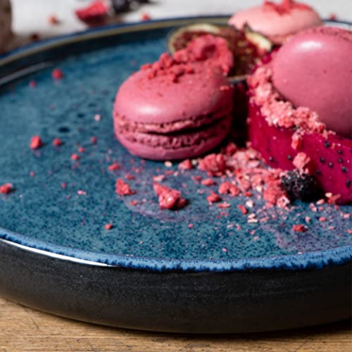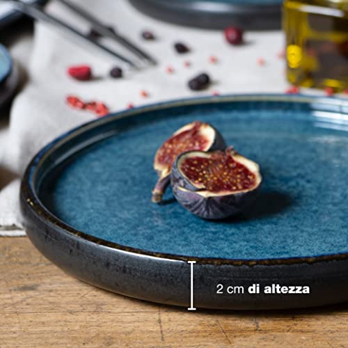 Set completo: piatto da insalata Moritz & Moritz in gres, diametro 21 cm e bordo alto 2 cm, 625 g per piatto, interno blu, esterno nero opaco, adatto al microonde e alla lavastoviglie