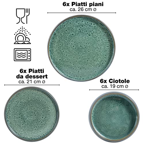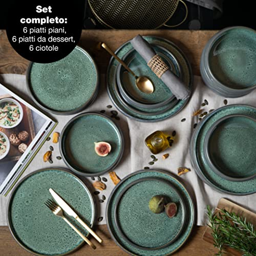 Moritz & Moritz SOLID servizio piatti - 18 Pezzi - set piatti 6 persone verde - 6 piatti piani, 6 piatti fondi, 6 piatti da dolce
