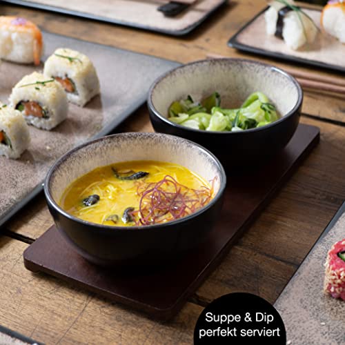 SET COMPLETO - Set sushi piatti per sushi Moritz & Moritz nero-beige per 4 persone: con 4 paia di bacchette, 4 porta bacchette, 4 ciotoline per salse, 4 ciotole da immersione per zenzero e wasabi, 4 ciotole per miso, 1 piatto grande da portata per sushi, 2 piatti piccoli da portata per sushi e 4 piatti da sushi