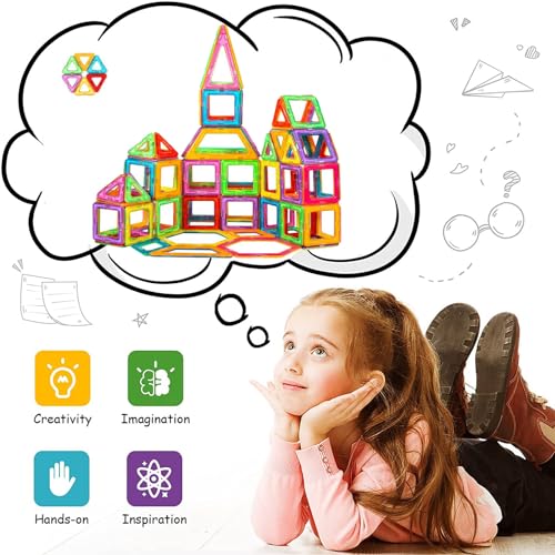 Morkka Costruzioni Magnetici per Bambini 3D Educativo Blocchi Costruzione Magneti Bambini Set Giocattoli per Bambini STEMS creatività Montessori per 3+ Ragazze di Anni Ragazzi(104 PCS)