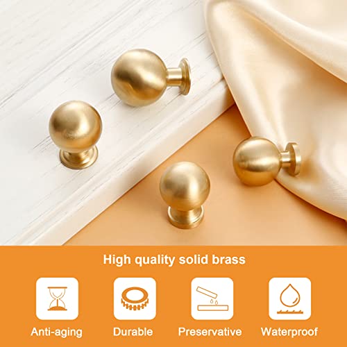 Morobor Maniglie sferiche a foro singolo solido, 4 maniglie rotonde in ottone, manopole dorate, pomello sferico per armadietti e armadietti da cucina