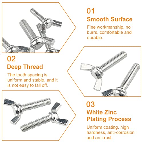 【Materiale premium】 I nostri bulloni a farfalla sono realizzati in acciaio al carbonio di alta qualità, la superficie è zincata, anticorrosione e antiruggine, non si rompe facilmente e può essere utilizzata per lungo tempo.